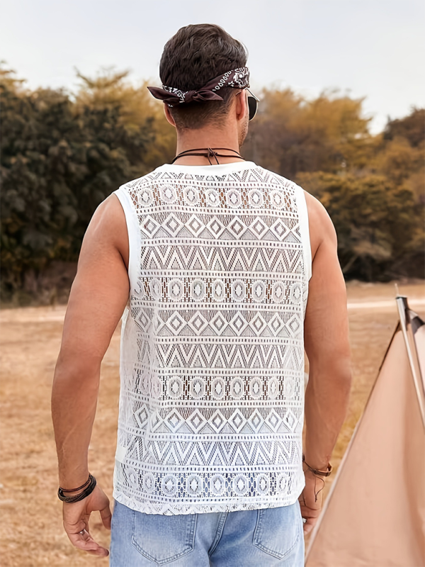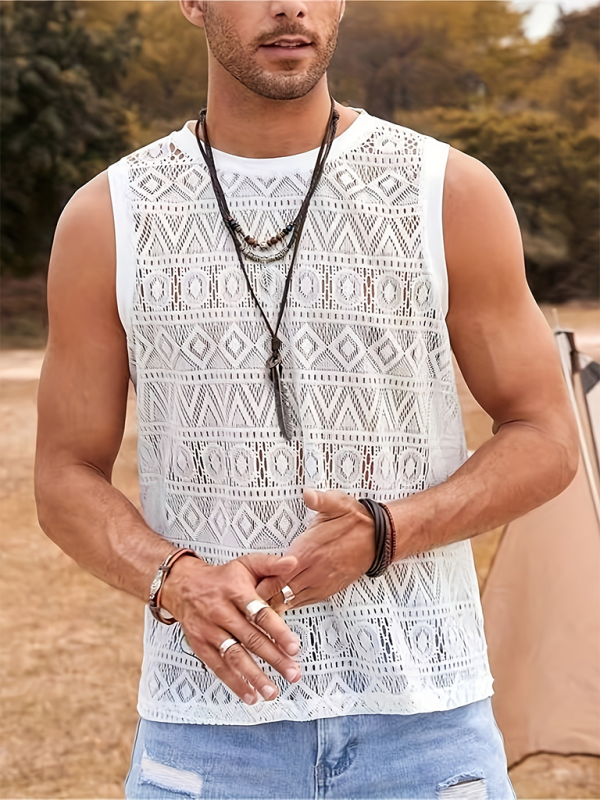 Men's new solid color sweater fashionable sleeveless top hollow breathable round neck casual vest