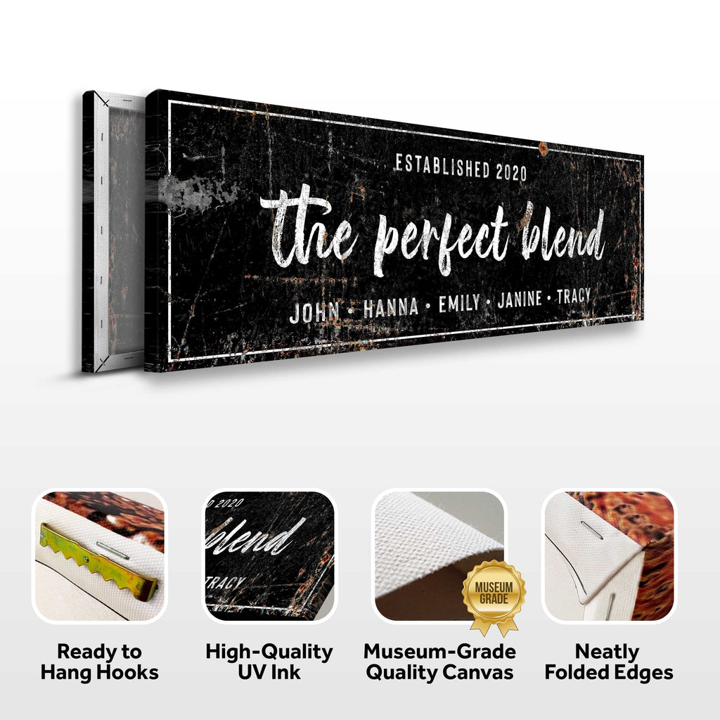Are you a coffee shop owner? Or do you have a house bar where you offer the neighborhood's best coffee? Why not personalize it with this sign for The Perfect Blend? This The Perfect Blend wall art will bring beauty to your house or place of business whether you hang it over your entrance, on the walls of your institution, or from the ceiling with other décor.