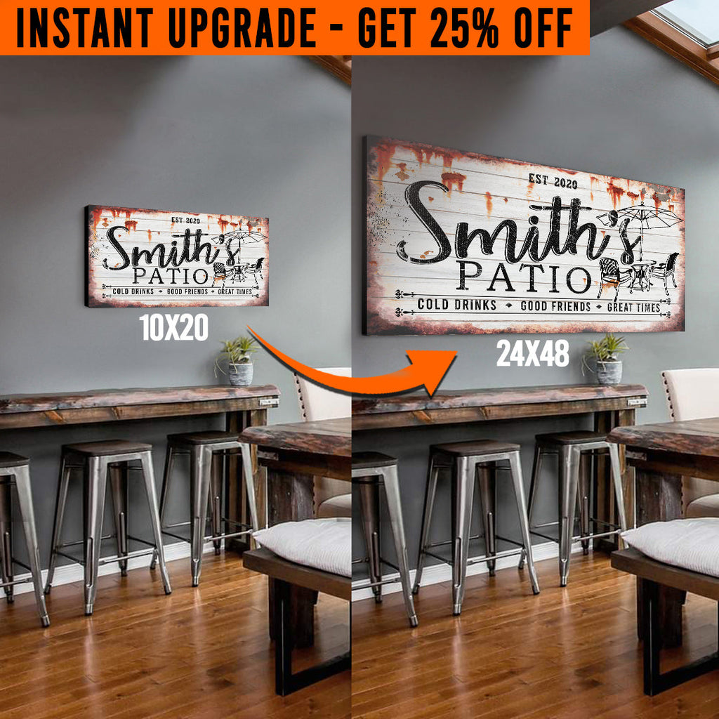 - This Upgrade Your 20x10 Inches 'Family Patio' (Style 2) Canvas To 48x24 Inches sign is custom-made just for you. Get it with your family name, or change the other text to something that suits you - so YOUR home will tell YOUR family story.