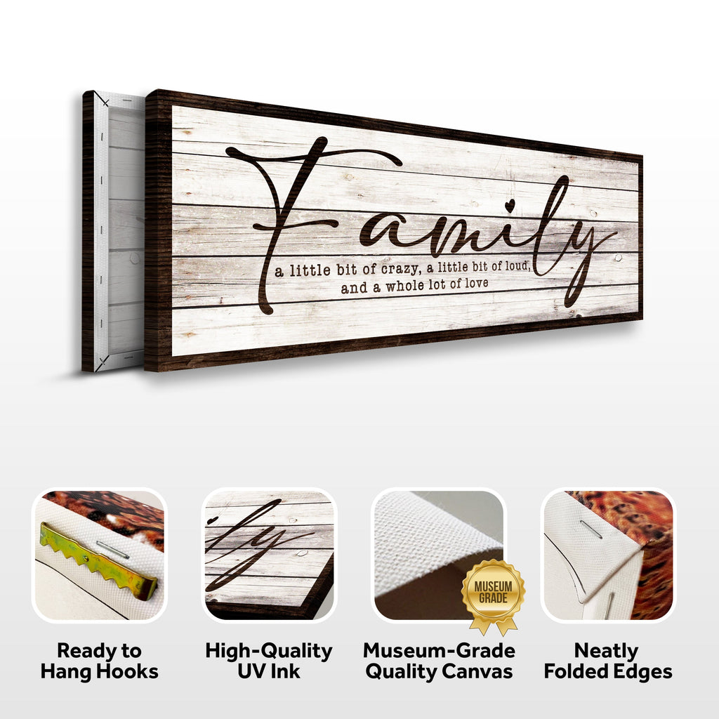Families come in all shapes and sizes, but love is one thing they all have in common. Whether you have a big or small family, your home is likely full of laughter, fun, and memories. What better way to celebrate your family than with A Little Bit Of Crazy, Loud, And A Whole Lot Of Love Family Wall Art? This beautiful sign is the perfect way to show off your family's personality.