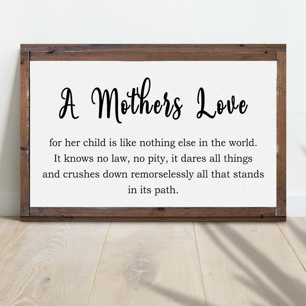A Mother's Love for Her Child sign is the perfect gift for any occasion. Whether it's Mother's Day, her birthday, or just because, this A Mother's Love for Her Child canvas print will let her know how much you love and appreciate her. Made from high-quality materials, this A Mother's Love for Her Child wall art is built to last. And best of all, it can be customized with your own personal message. So go ahead and tell your mom how much you love her. With this A Mother's Love for Her Child canvas wall art, she'll always know.