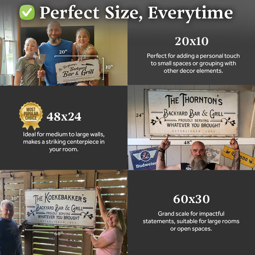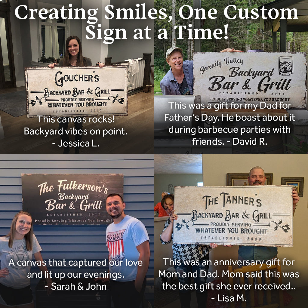 Looking for a way to add some personality to your backyard relaxation space? Look no further than our Vintage Backyard Bar & Grill canvas wall art! This backyard bar and grill sign is the perfect way to personalize your space and make it your own. This sign will turn heads and get people talking with its retro-inspired design.