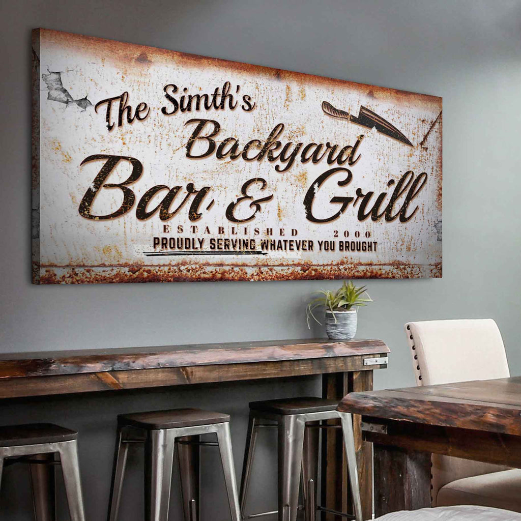 As the days get shorter and the nights get cooler, there's no better way to enjoy the outdoors than by cozying up with a rustic backyard bar & grill sign. Whether it's to enjoy a glass of wine with friends or to cook up a delicious meal, our rustic backyard bar & grill canvas print is the perfect addition to any outdoor space.