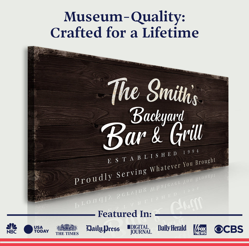 There is no better way to enjoy the outdoors as the days grow shorter and the nights become cooler than by cuddling up with a Backyard Bar & Grill sign. Our Backyard Bar & Grill canvas print is the ideal complement to any outside space, whether to have a drink with friends or cook a wonderful dinner.