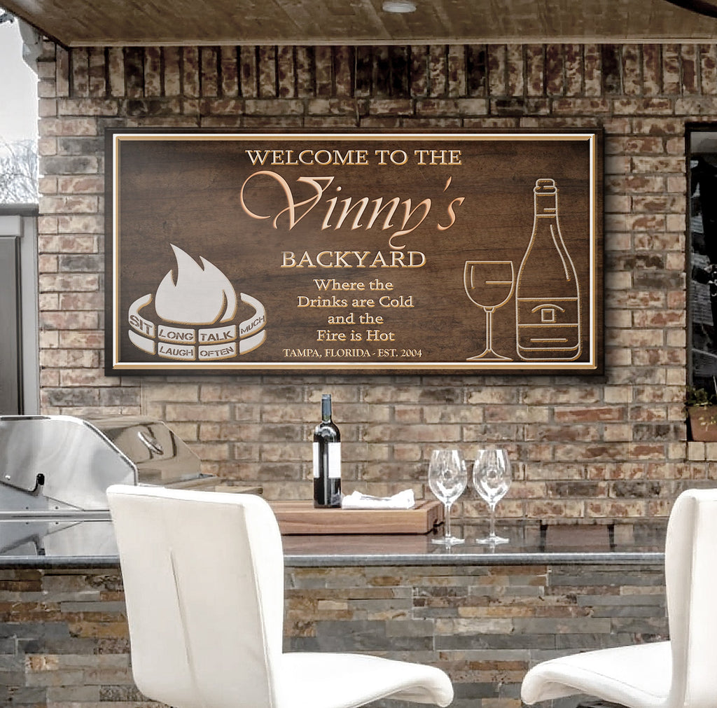 This beautiful backyard sign is made of high-quality canvas and features a stunning rustic design. It's the perfect way to add a touch of charm and character to your favorite outdoor space.