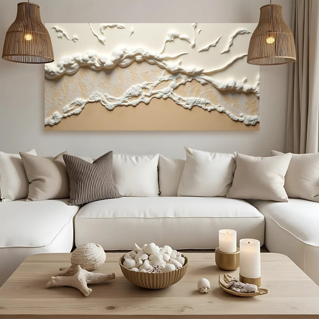 Beige Abstract Ocean Waves Wall Art