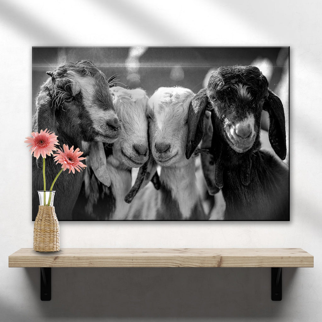 Don't worry about having too much going on in your space: our Black and White Baby Goats Canvas Art is perfect for any room in your house or office. The soft colors and playful expressions make this canvas an ideal addition to any room in your home. It's sure to make you smile every time you look at it!