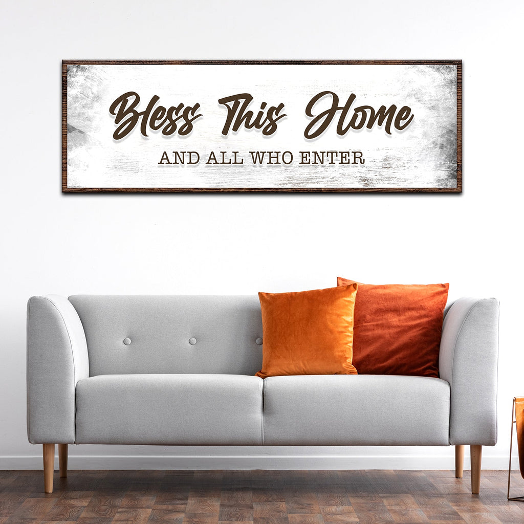 Whether hung up by the door or placed on the mantle, this sign reminds us of the warmth and love within these four walls. It's also a great way to show your guests that you're glad they're here. So if you're looking for a way to add a little extra something to your home, pick up a Bless This Home and All Who Enter wall art.
