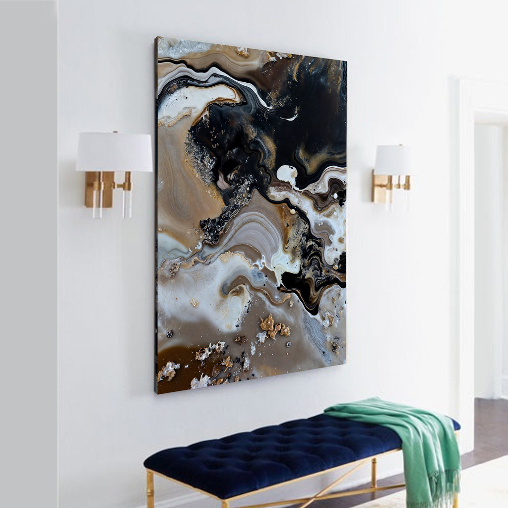 Enhance your home with the captivating beauty of "Geode Whispers" from one of his famous art collections. This abstract canvas features swirling earthy tones and intricate patterns reminiscent of natural geodes, bringing a touch of sophistication and tranquility to any room. Perfect for creating a serene atmosphere, it adds depth and elegance to your decor. Ideal for living rooms, bedrooms, or any space in need of a refined focal point.