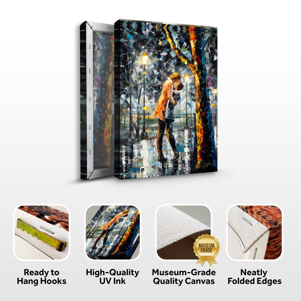 "Kaleidoscope Kiss", from one of his collections, beautifully captures the intimate magic of a shared moment in a vibrant, contemporary style. This stunning piece brings warmth and a touch of romance to your home, making it a perfect addition to any room where love and light are celebrated.