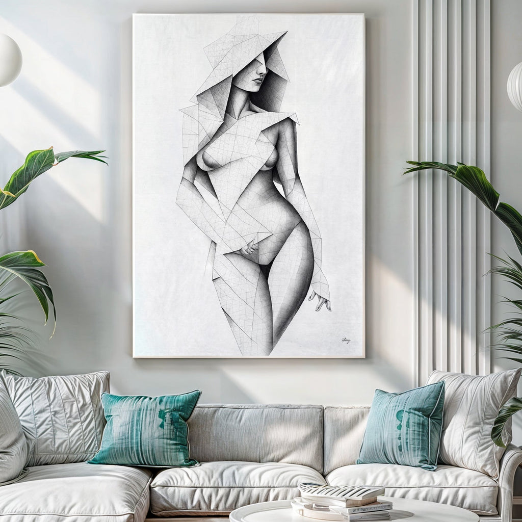 Elevate your space with "Tangible Point," one of his elegant contemporary artworks. This striking piece features a geometric interpretation of the human form, blending precise lines and subtle shading. Perfect for adding a touch of modern sophistication and artistic intrigue, "Tangible Point" transforms your home into a gallery of refined beauty.