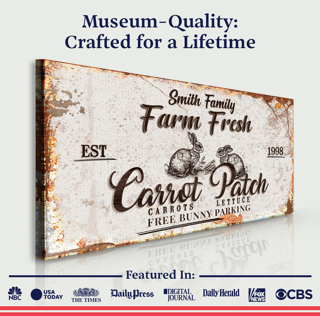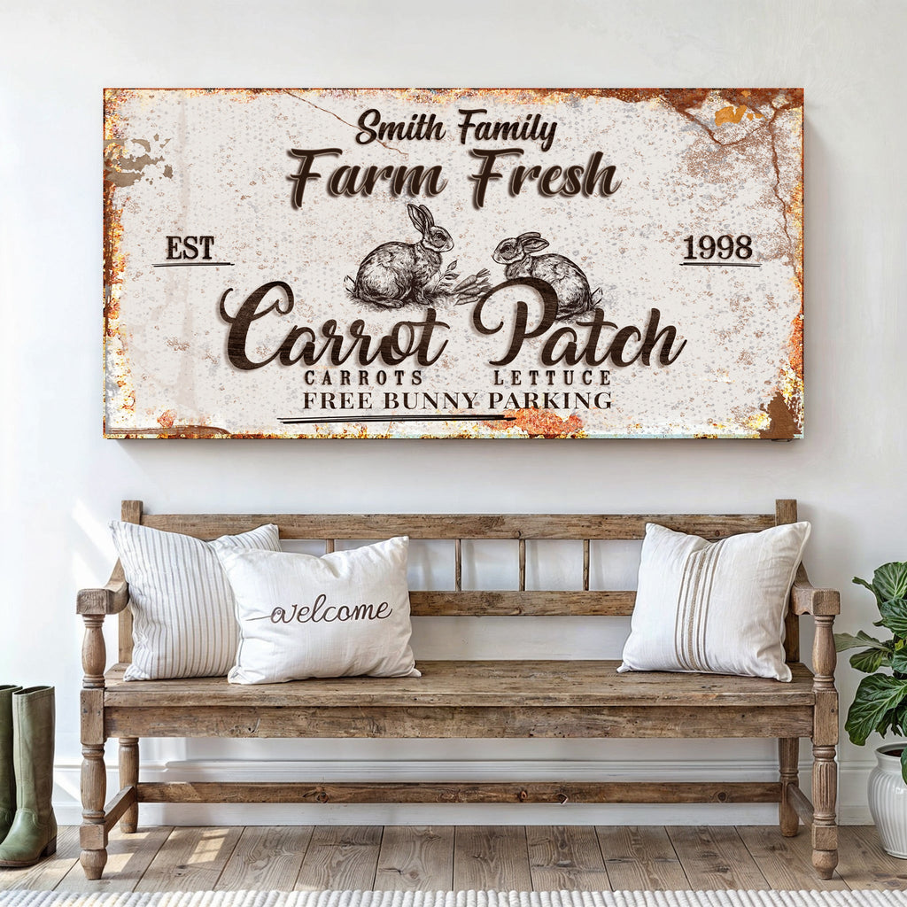 You can customize this Carrot Patch Easter Sign II canvas print with the name of your business to make it more special! The Custom Easter Carrot Farm wall art is made from high-quality materials. It is excellent branding for your carrot farm business! This canvas wall art is ideal for creating a cozy and homey ambiance on your farm. Thanks to Custom Easter Carrot Farm wall art, you can now tell the world about your amazing business!