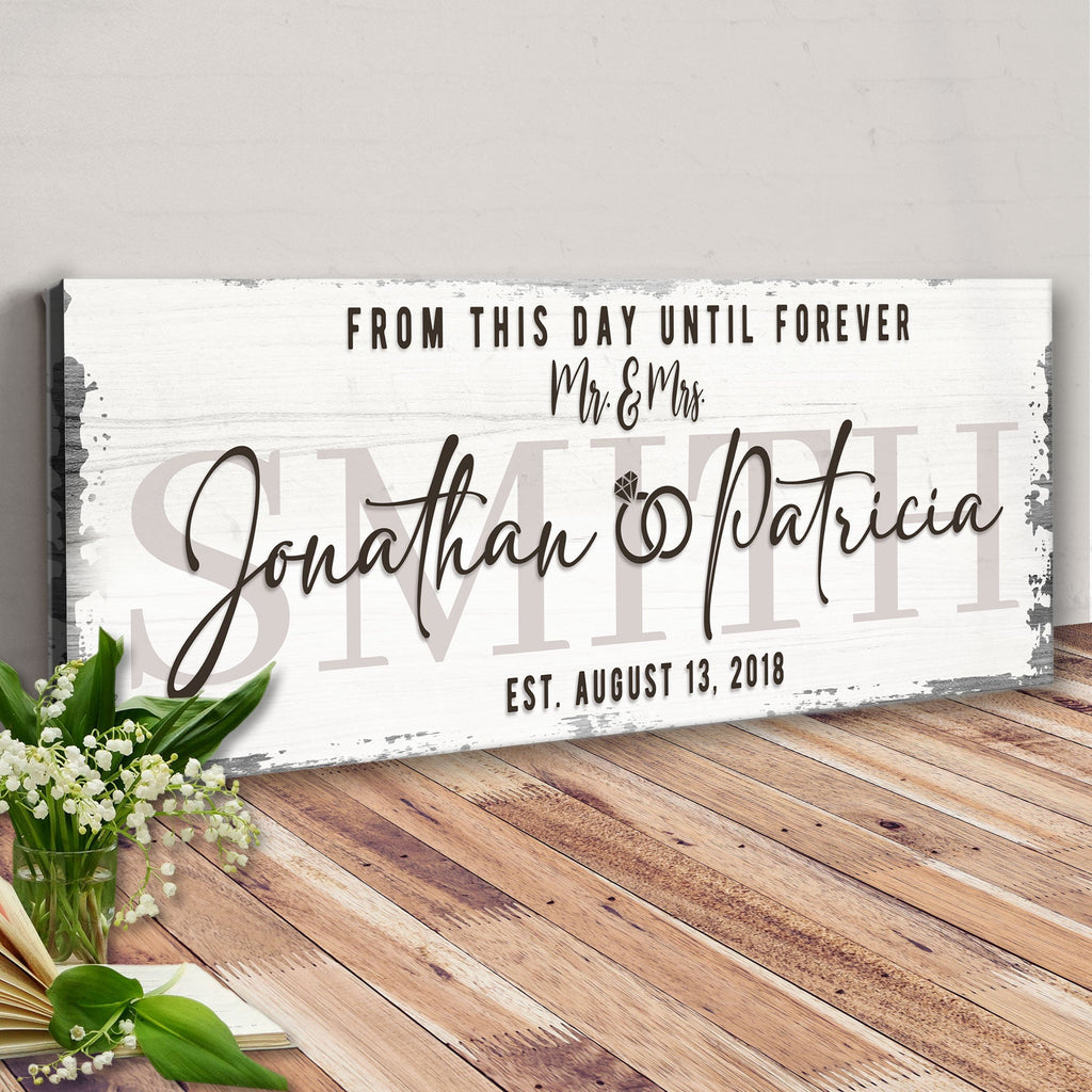 Why not use a Wedding Sign wall art to truly personalize your once-in-a-lifetime wedding day? This elegant sign may be personalized with your favorite song lyrics, making it a one-of-a-kind complement to your big day. The sign comes in three sizes, so you can choose the best one for your wedding venue. Because the canvas material is sturdy and easy to maintain, you may use this Wedding Song Sign for many years. So, to add a little flair to your wedding day, use a Wedding Sign print. Your guests will remember your special day for the rest of their lives.