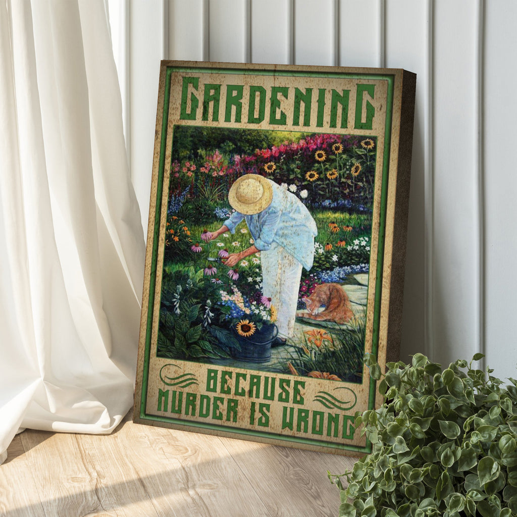 This Gardening Because Murder Is Wrong Sign is the perfect way to show your love of gardening. If you love gardening and want to show others what gardening means, this is the perfect gift for yourself or someone else. You can hang it in your office, bedroom, or bathroom.