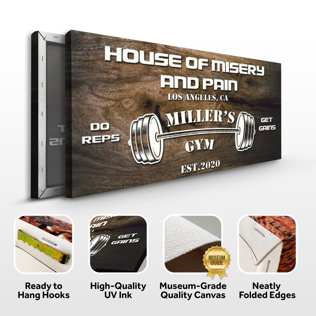 A gym sign is a great way to remind yourself to train harder and stay motivated when working the bars through pain and sweat. It can be a simple, one-line message or a more elaborate design. Gym signs are usually made of durable materials like our high quality canvas, so they can withstand the rigors of an intense workout.