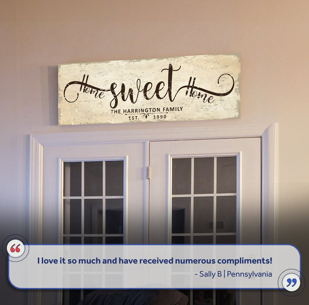 The Home Sweet Home wall art is made of high-quality canvas and is professionally printed with your choice of personalization. You can choose to add your name, address, or a special message to make this sign truly unique. Plus, the sign comes ready to hang, so you can enjoy it right away.