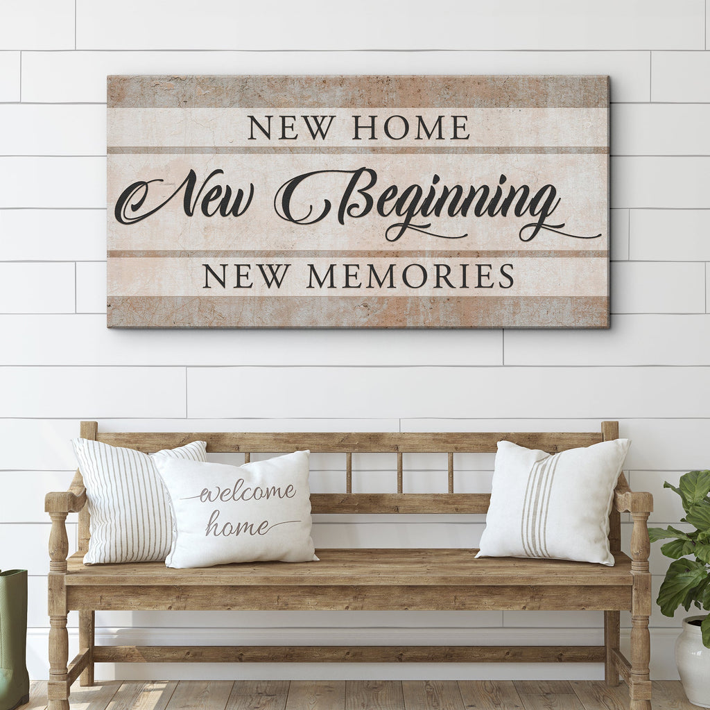 A brand-new house is a blank canvas, a fresh start, and a new chapter. It's an opportunity to make a new beginning, new memories, and an impact on the world. What better way to mark the start of this new chapter in your life than with a lovely canvas print of "New Home, New Beginning"? Our New Home, New Beginning sign is ideal for giving your new room a unique touch. This contemporary yet rustic New Home, New Beginning wall art is made of high-quality canvas.
