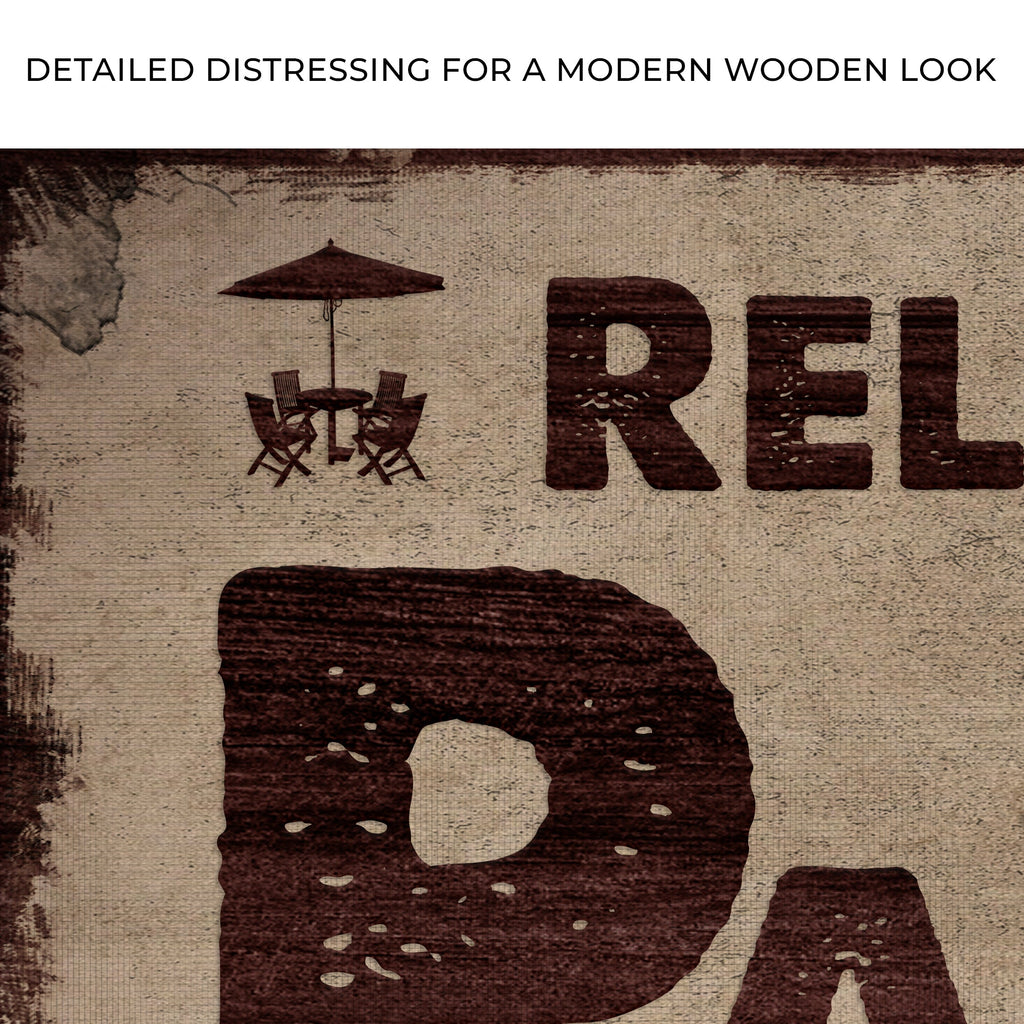 The sign is made with a high-quality canvas sturdy enough to stand up to the elements. It also has built-in hinged hangers, so you can hang it directly on your patio wall or inside your home if you'd prefer! This sign will look great on any wall and let everyone know how much time they can spend outside before heading inside again!