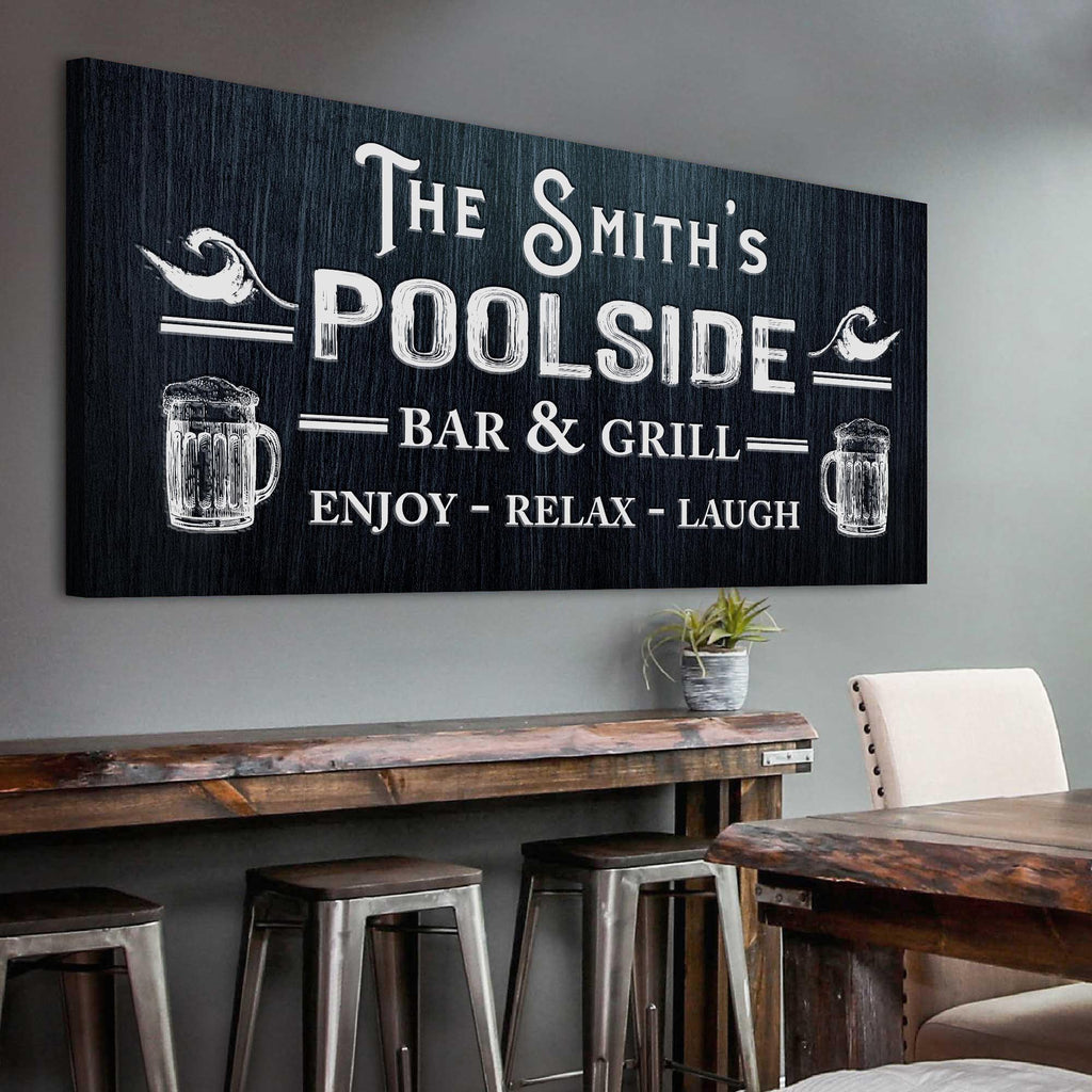Looking for a unique way to spruce up your pool area this summer? Check out our Poolside Bar And Grill sign! This customizable Poolside Bar And Grill wall art is the perfect addition to any home grill station. Whether grilling for one or hosting a pool party, our Poolside Bar And Grill canvas wall art will help you create the perfect vibe.
