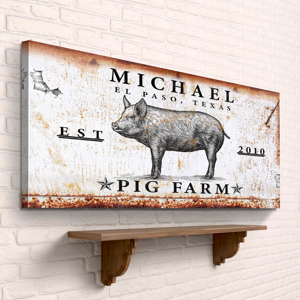 If you're looking for the perfect pig farm sign to transform your farmhouse into a destination, look no further than this pig farm canvas print. The vibrant colors and creative design are sure to catch the eye of any visitor, and the durable canvas material will withstand the elements for years to come.
