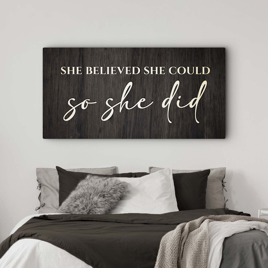 Hang it in your office or home as a source of inspiration, or give it as a gift to someone who could use a little pick-me-up. However you choose to use it, this She Believed She Could So She Did wall art is sure to help you celebrate your success in style!