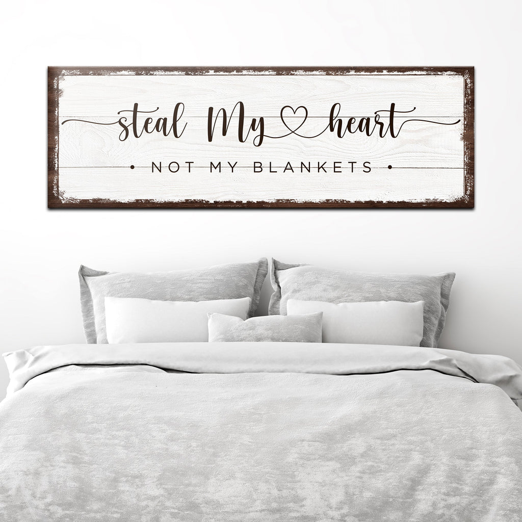 Looking for a unique and stylish way to add personality to your home? Then check out our Steal my Heart, not My Blanket sign! This beautiful wall art is perfect for anyone who wants to add a touch of creativity to their home décor. The sign comes in three sizes, so you can choose the one that best fits your space. And because it's made from high-quality materials, you can be sure that it will last for years to come. So don't wait any longer; order your Steal my Heart, not My Blanket wall art today!