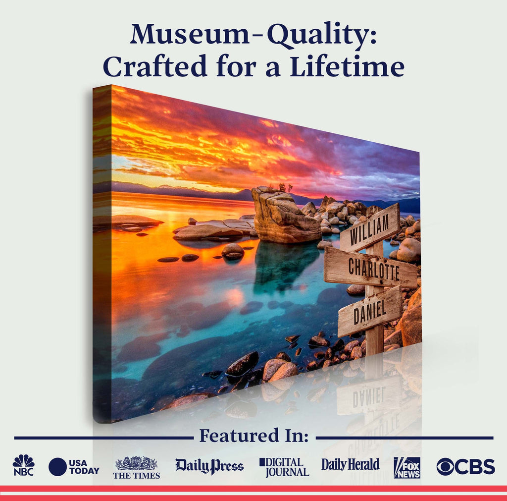 You can customize the Family Names canvas print with your choice of words and names, as well as the image you want in the background. The fonts used and the color scheme are also customizable, so you can have something entirely different.