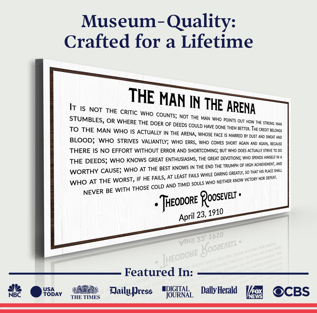 The Man in The Arena wall art is made of a thick premium canvas, and UV-resistant ink is used to print the graphics that would last long, like your bond as a family. The Man in The Arena canvas wall art is perfect for giving your living room a warm ambiance that everyone would love! Browse our Man in The Arena sign and turn your house into a home.
