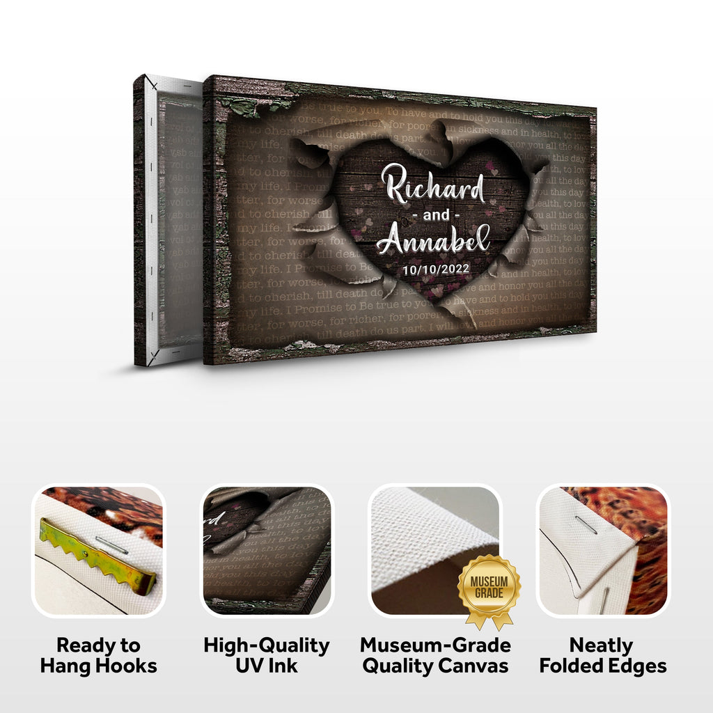 If you're looking for a truly special way to express your love and commitment to each other on your wedding day, this custom Unwrapped Heart Wedding Vows Sign is perfect.