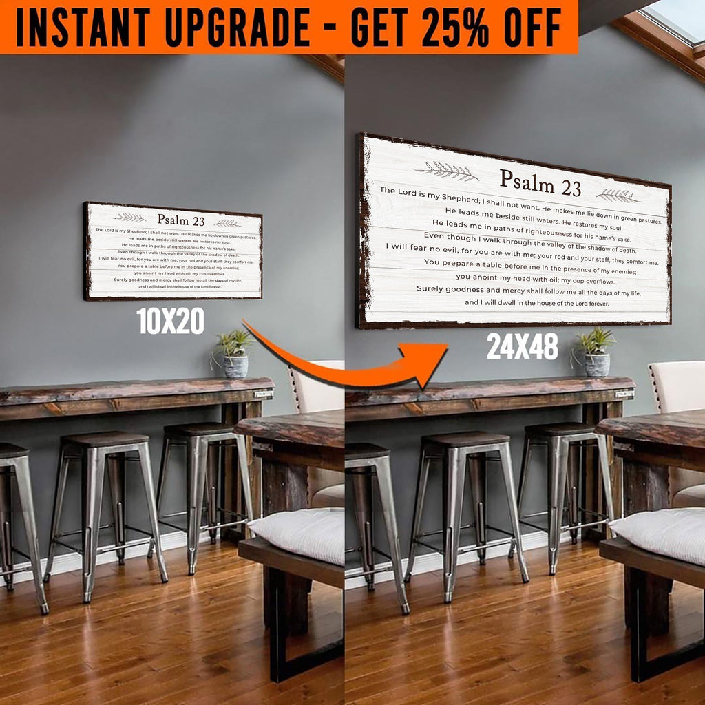 - This Upgrade Your 'Psalm 23 - The Lord Is My Shepherd' (Style 1) Canvas To 24x48 Inches sign is custom-made just for you. Get it with your family name, or change the other text to something that suits you - so YOUR home will tell YOUR family story.