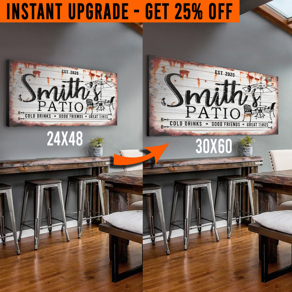 - This Upgrade Your 48x24 Inches 'Family Patio' (Style 2) Canvas To 60x30 Inches sign is custom-made just for you. Get it with your family name, or change the other text to something that suits you - so YOUR home will tell YOUR family story.