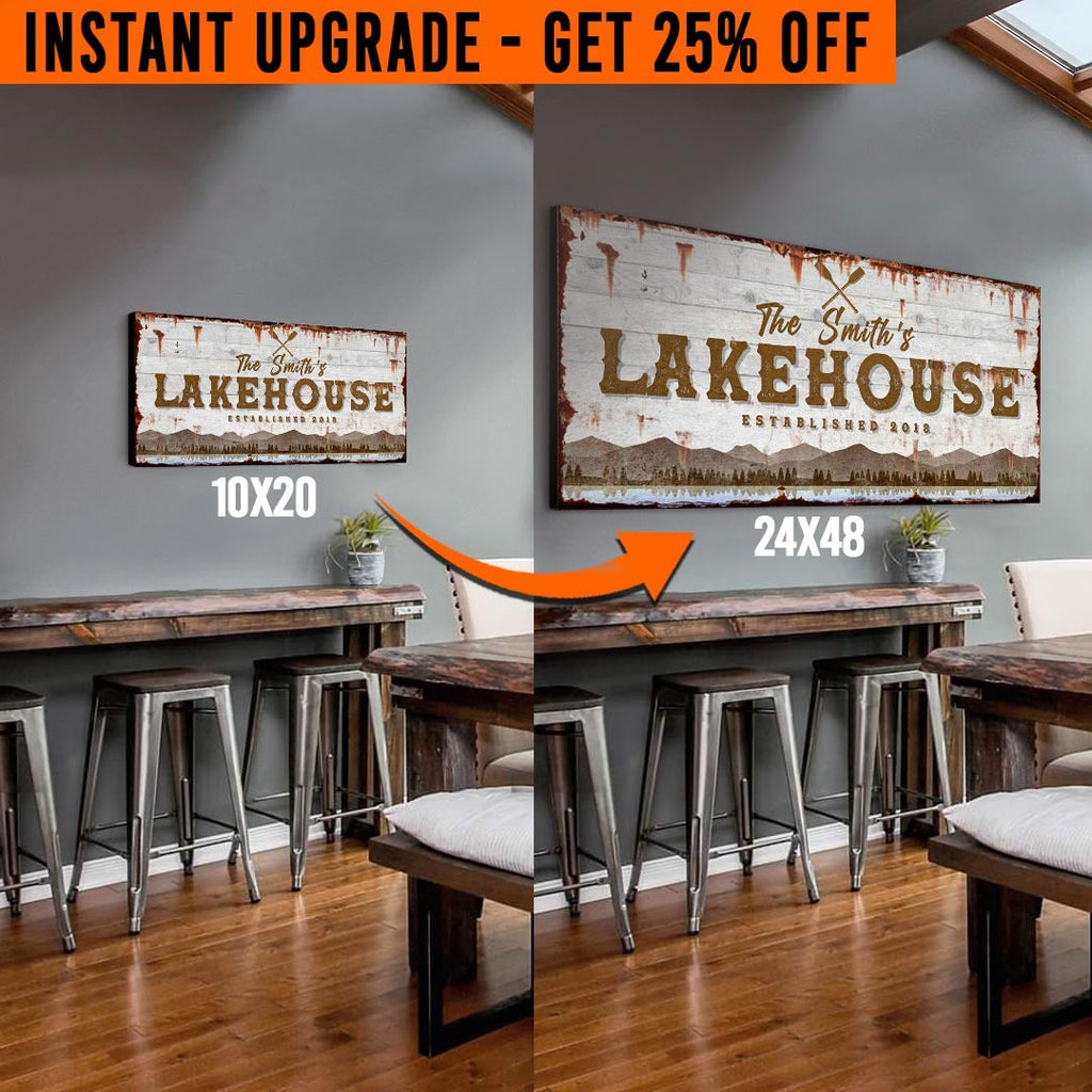 - This Upgrade Your 'Lake House' (Style 2) Canvas To 24x48 Inches sign is custom-made just for you. Get it with your family name, or change the other text to something that suits you - so YOUR home will tell YOUR family story.