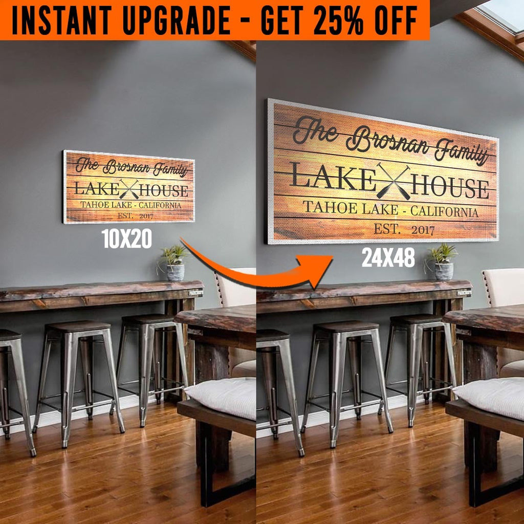 - This Upgrade Your 'Lake House' (Style 3) Canvas To 24x48 Inches sign is custom-made just for you. Get it with your family name, or change the other text to something that suits you - so YOUR home will tell YOUR family story.