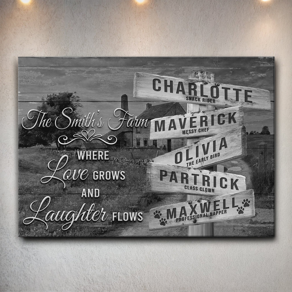 Where Love Grows And Laughter Flows Family Names Sign