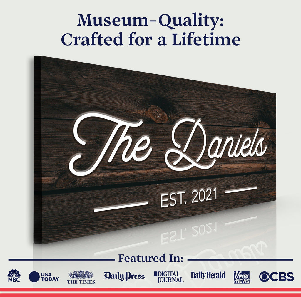 We now offer our Family Name signs, the ideal solution to create a legacy for your family on the wall. The personalized canvas is made to fit your family's requirements and features your family name prominently. This Family Name canvas print is a wonderful alternative for décor, whether you're searching for a special present for a loved one or a way to inject some individuality into your house.