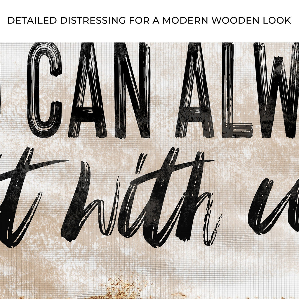 If you're looking for a stylish, artsy, and creative way to spruce up your home or business, look no further than the You Can Totally Sit With Us Sign! This unique piece can be used as home decor in your kitchen or as an attention-grabbing sign for your eatery.